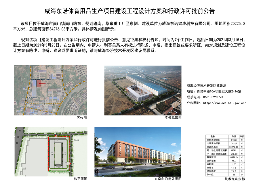 威海东诺体育用品生产项目建设工程设计方案和行政许可批前公告