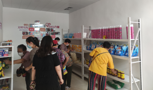 走进泊于镇逍遥村信用超市,琳琅满目的各类生活用品整齐地陈列在货架上,几位村民拿着超市信用票前来兑换所需要的油盐酱醋等生活用品。