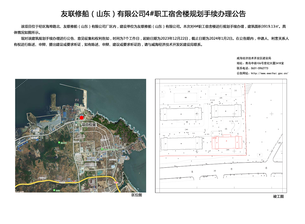 友联修船(山东)有限公司4#职工宿舍楼规划手续办理公告