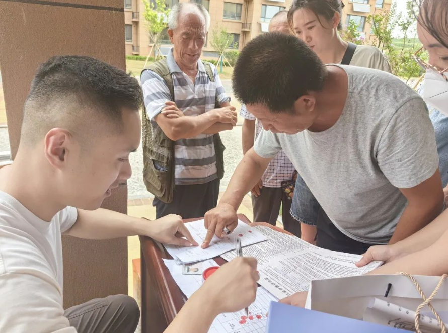 “他叔,帮我茫茫(看看)这个材料拿的是不对?”“主任,这个水电在哪儿开通?”连日来,在社区书记刘新壮的带领下,“两委”干部忙得是脚不沾地,帮助居民跑上跑下,解答疑惑。“真的是好干部!这么耐心!”“他们真的是太辛苦了,中午连饭都顾不上吃。”居民们幸福的笑容不言于表,将两委干部的辛苦看在眼里,纷纷竖起大拇指。