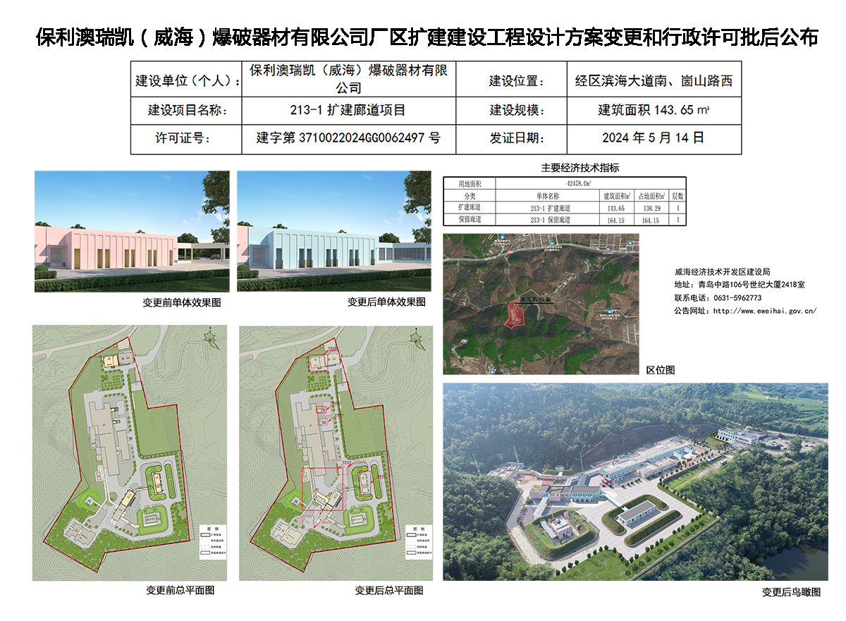 保利澳瑞凯(威海)爆破器材有限公司厂区扩建建设工程设计方案变更和行政许可批后公布