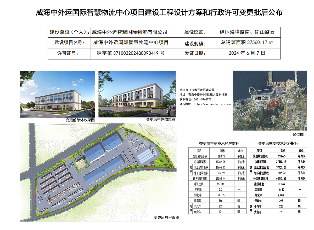 威海中外运国际智慧物流中心项目建设工程设计方案和行政许可变更批后公布