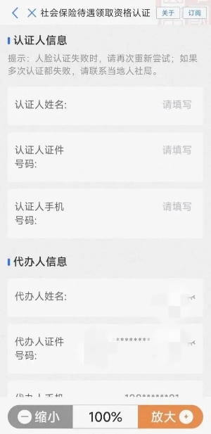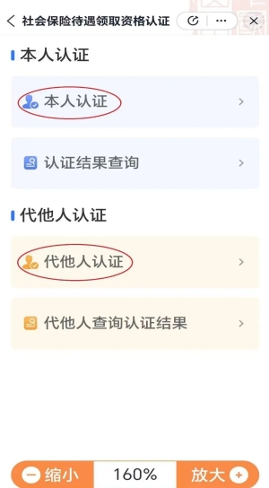 本人认证的,直接点击“本人认证”;对使用智能手机不方便的,他人可以通过代办功能协助完成认证,选择开启“代他人认证”,添加人员信息便可进行认证。