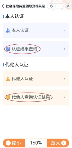 您也可以返回至“社会保险待遇领取资格认证”,点击“认证结果查询”或“代他人查询认证结果”,经过授权确认后,便可查询本年度认证结果记录。