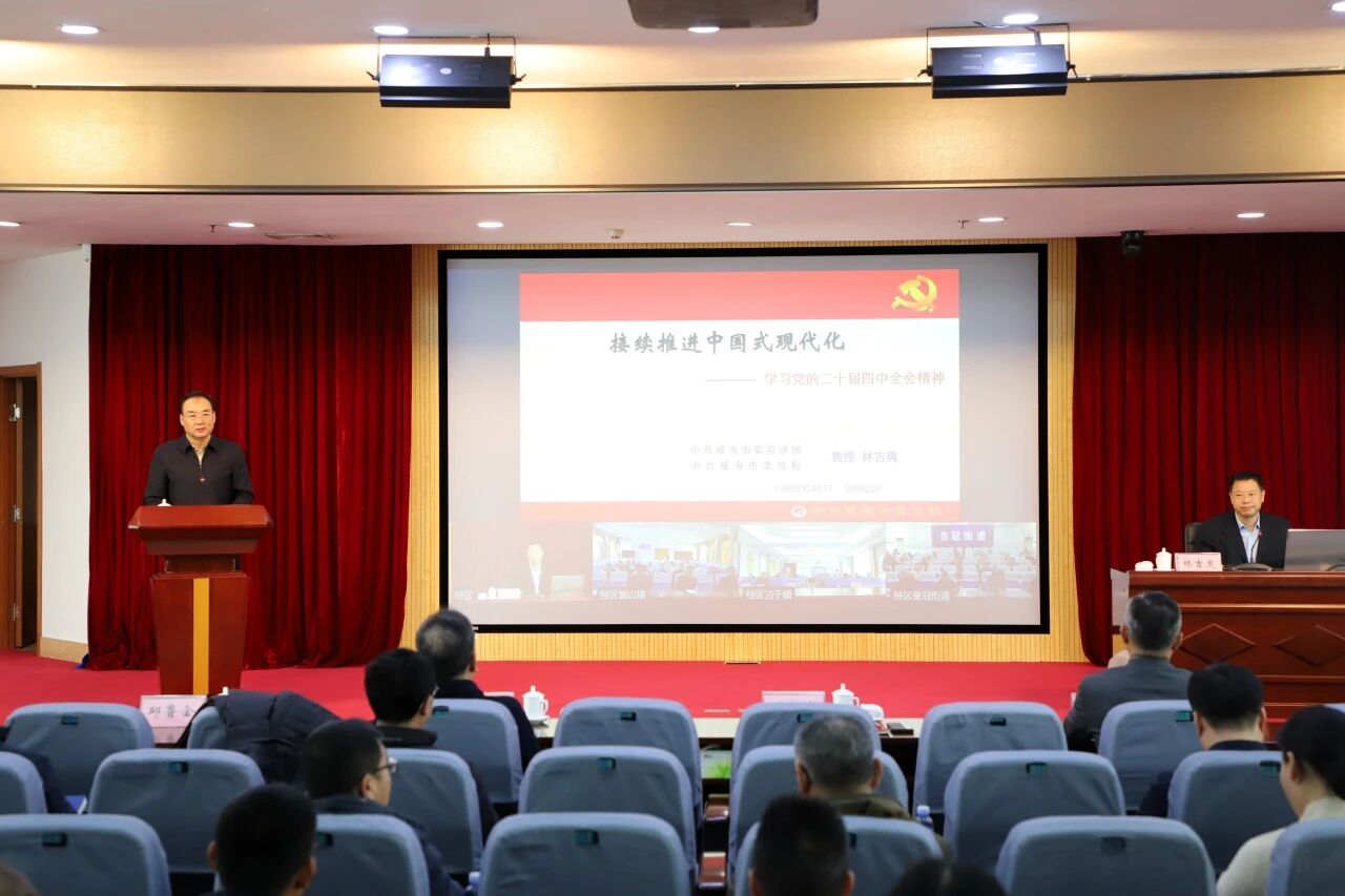 12月5日,学习贯彻党的二十届四中全会精神市委宣讲团成员、市委党校法学部主任林吉爽来经开区作党的二十届四中全会精神宣讲报告。区党工委书记、管委主任王清主持报告会,区领导王役兵、邵明光、邱鲁金、王文萍、彭冠军、于斌、王利辉、李庆龙出席。