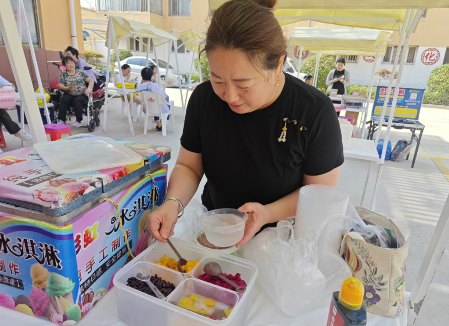 社区乐购区内人头攒动,这里有新鲜的蔬菜水果、辣炒年糕、红肠、媳妇饼、还有炎热夏日清凉冰粉等,都是商家们带来的优惠好物。商家们本着公益之心,给出了十分亲民的价格,居民们在挑选商品的过程中,不时传来阵阵欢笑声,大家争相购买着自己需要的东西,既买到了实惠,又感受到了购物的乐趣。