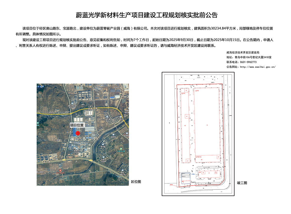 蔚蓝光学新材料生产项目建设工程规划核实批前公告