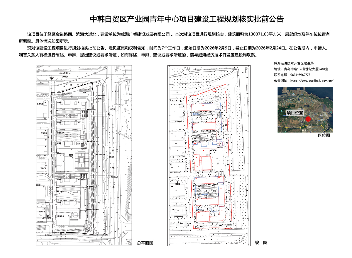 中韩自贸区产业园青年中心项目建设工程竣工规划核实批前公告