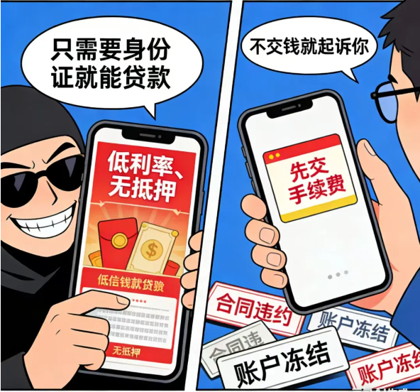 春节是网络贷款诈骗的高发期,回城返乡购置年货、朋友交际等都需要资金周转。一些骗子通过建立虚假网站、平台、App等手段实施假贷款真诈骗。