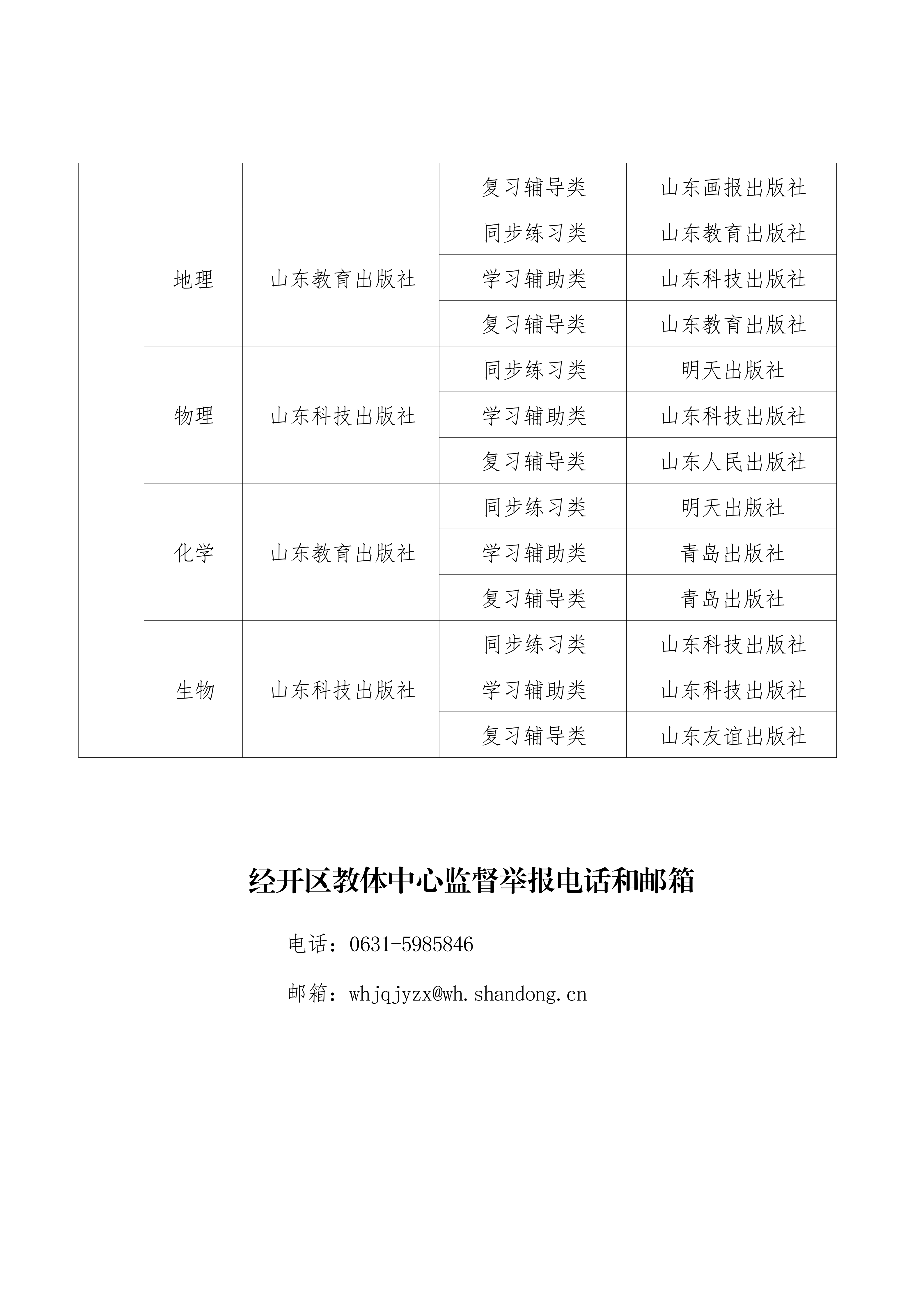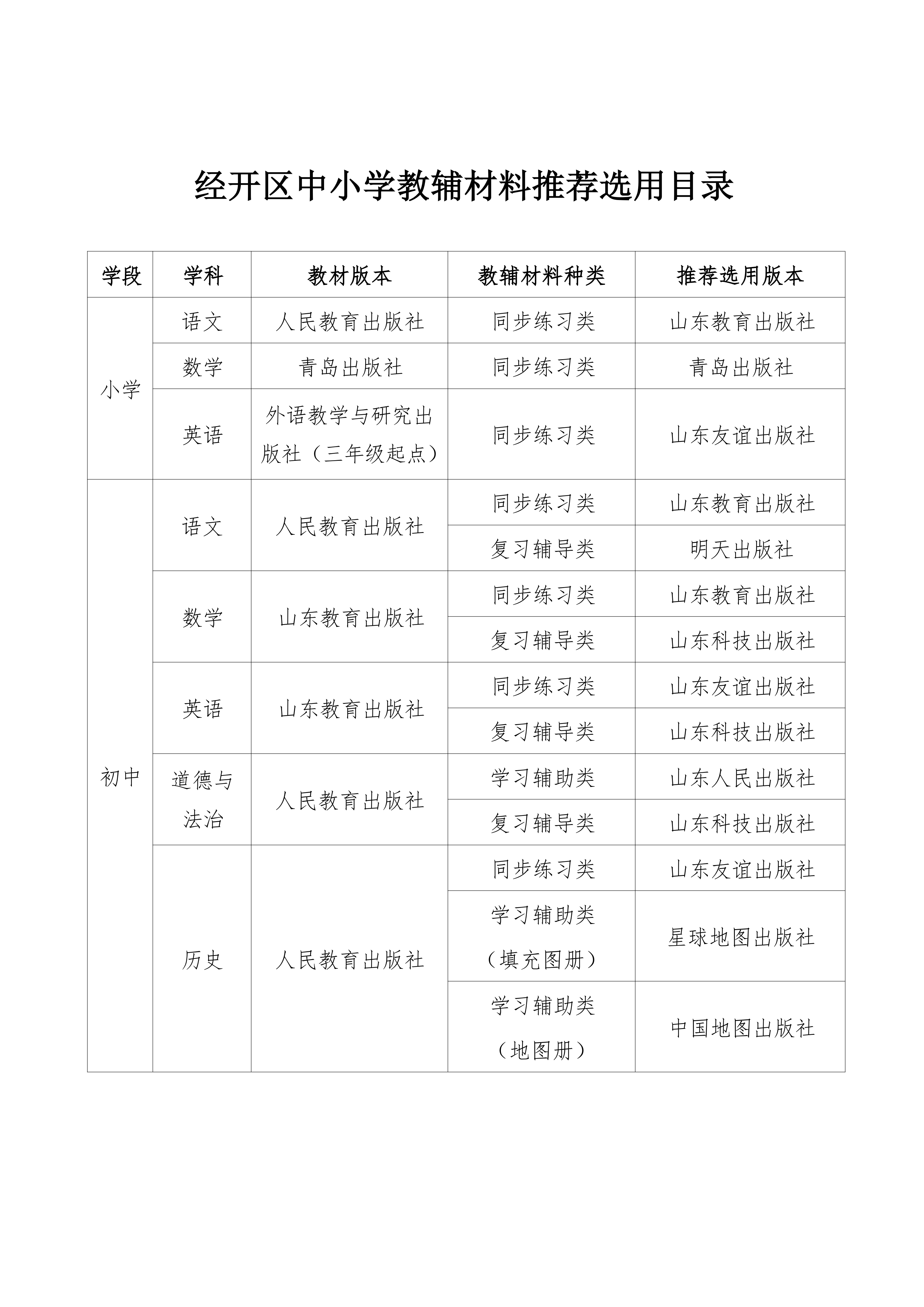 经开区中小学教辅材料推荐选用目录及监督举报电话